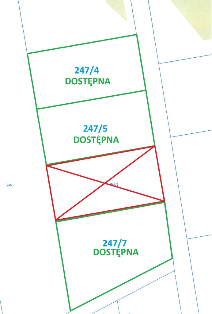 Dodatkowe DziałkiDostępne są również sąsiednie działki oznaczone numerami 247/5 oraz 247/7, co stwarza dodatkowe możliwości inwestycyjne.
