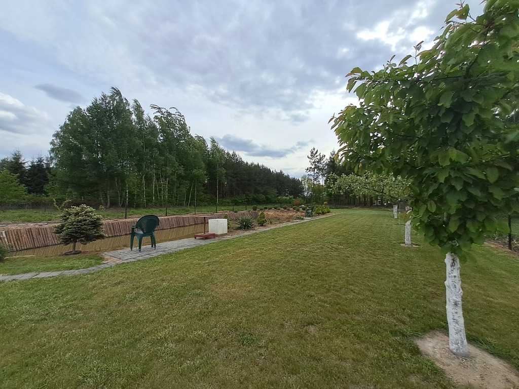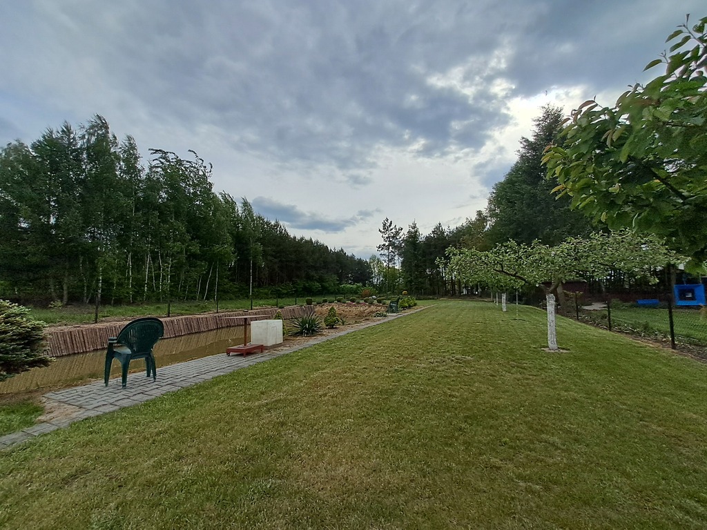 Działka zadbana, zagospodarowana ozdobnymi nasadzenia, stawem i prywatnym lasem , który nie jest w planie urządzenia lasu więc nie będzie konieczne jej odlesianie.