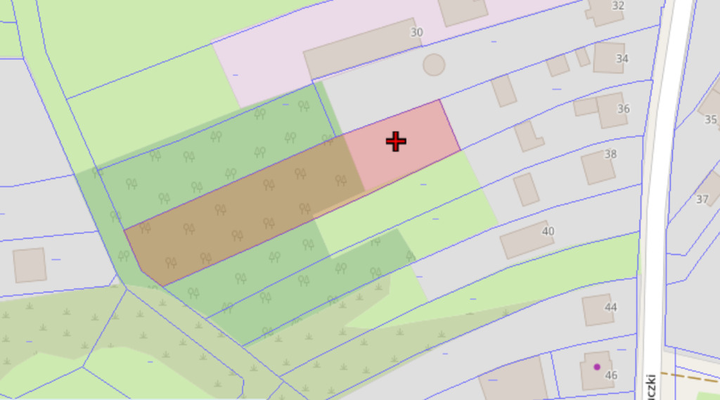 Działka o powierzchni 2632m2 i kształcie prostokąta znajduje się przy projektowanej drodze z dojazdem od ulicy Brzeźnickiej i Jana Bytnara.