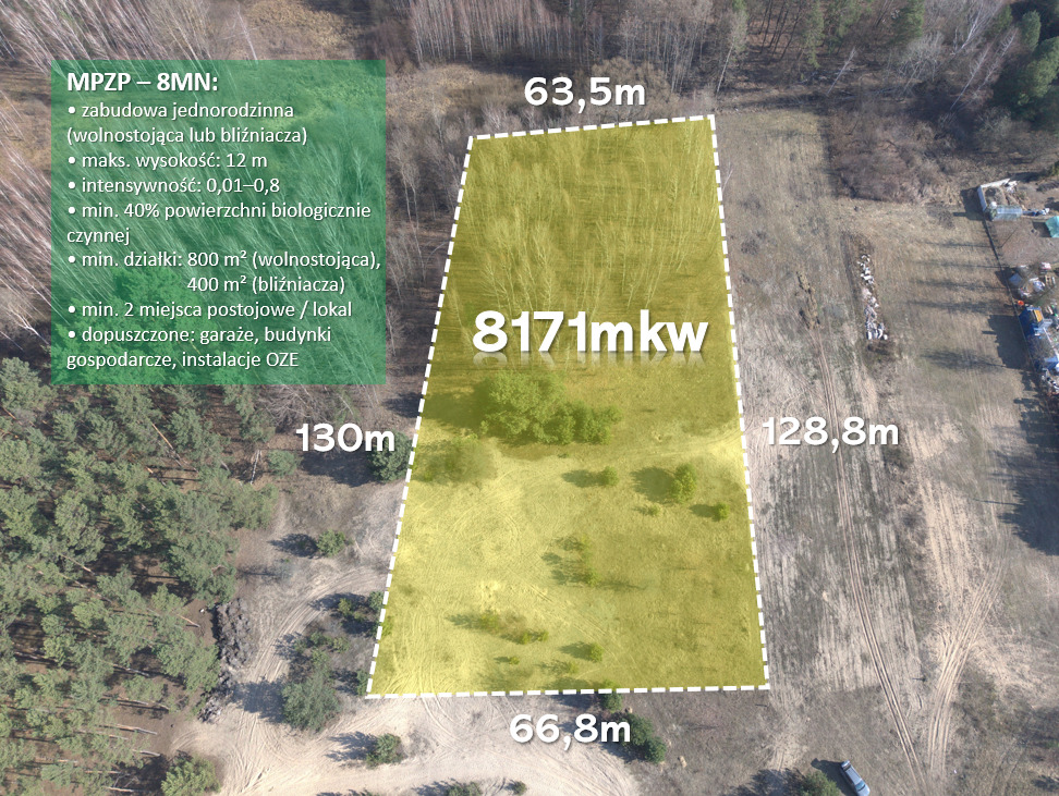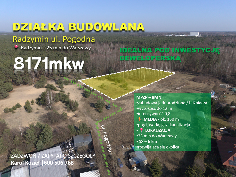 Działka inwestycyjna 8171 m² | Radzymin, ul. Pogodna | MPZP – zabudowa jednorodzinna