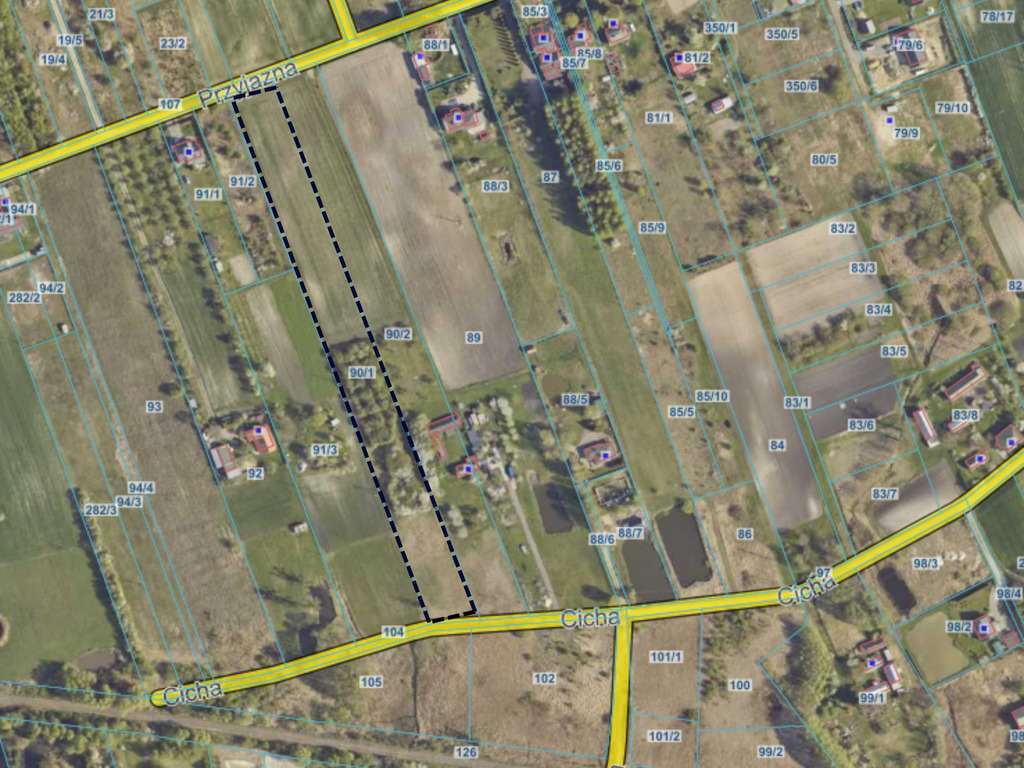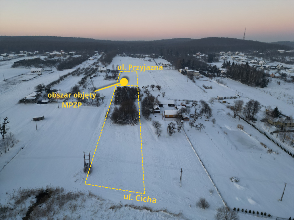 Według MPZP teren zabudowy zagrodowej z dopuszczeniem zabudowy jednorodzinnej. Działka z dostępem do dwóch ulic: Przyjaznej i Cichej.