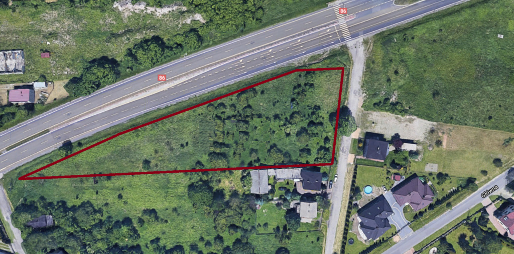 Działka znajduje się na pograniczu Sarnowa i Będzina bezpośrednio przy DK86 przy ul. Źródlanej.