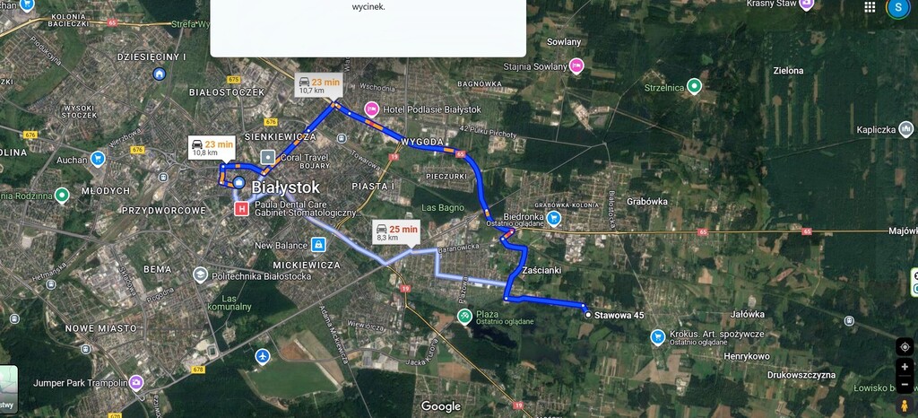 - do centrum Białegostoku 7,5 km (ok 20 min samochodem),