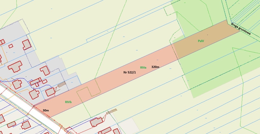 - ok. 40% (ok. 3126 m²) – teren pod zabudowę