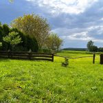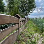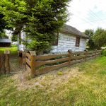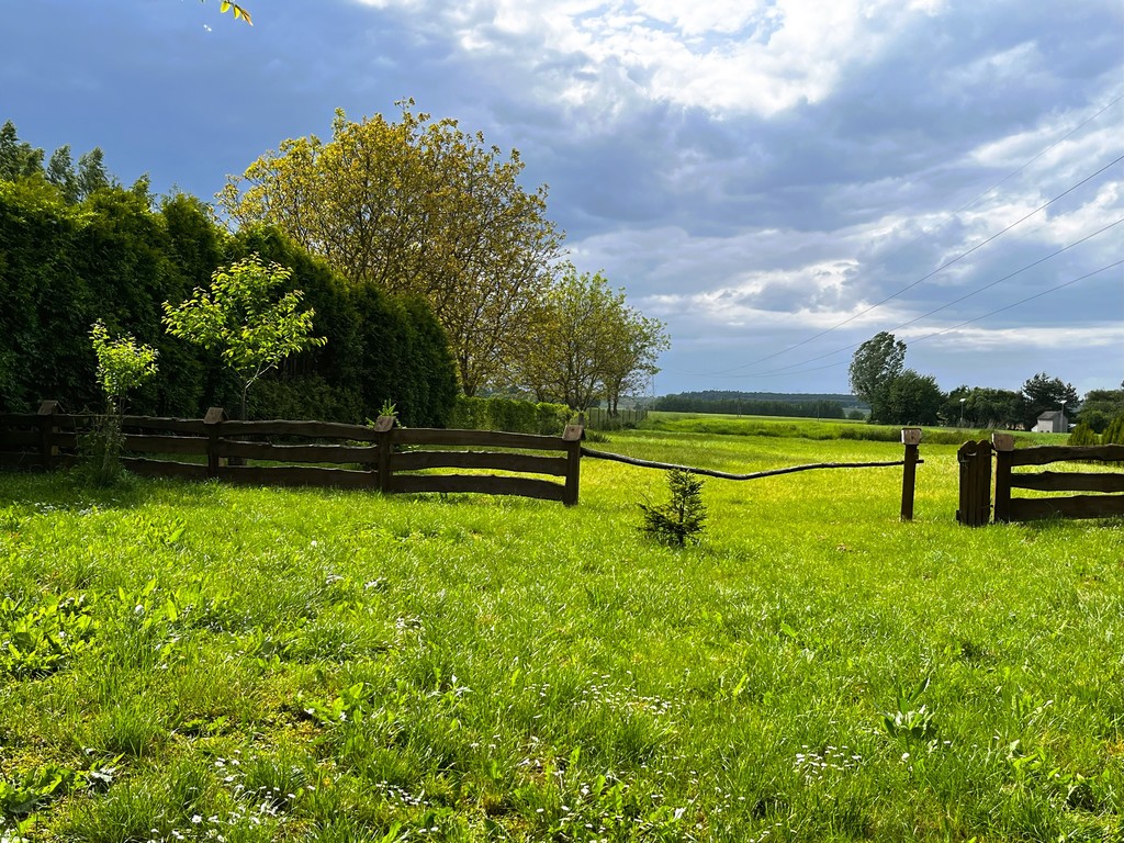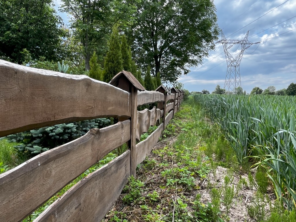 Działka jest częściowo ogrodzona nowym, drewnianym płotem w rustykalnym stylu.