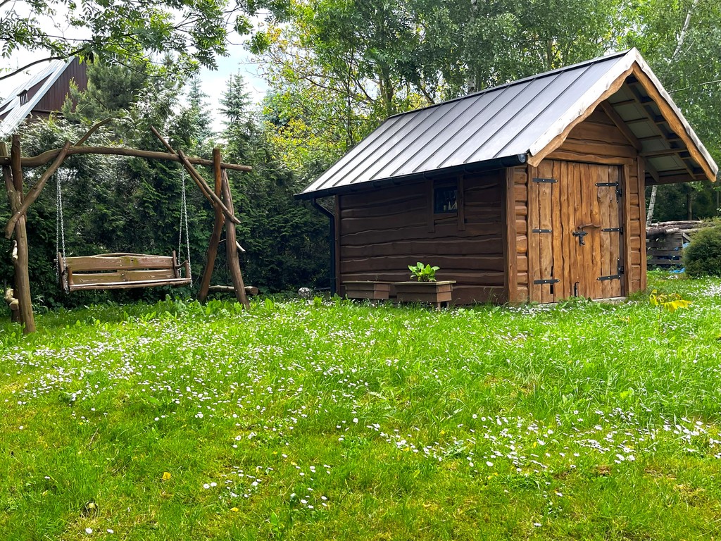 Teren jest zadbany i ładnie zagospodarowany. Okolica i samo miejsce posiadają duże walory wypoczynkowe. Przy domku znajdziemy tu huśtawkę, hamaki, budynek gospodarczy, miejsce do biesiad - stoły z ławami, miejsce na ognisko oraz sławojkę.