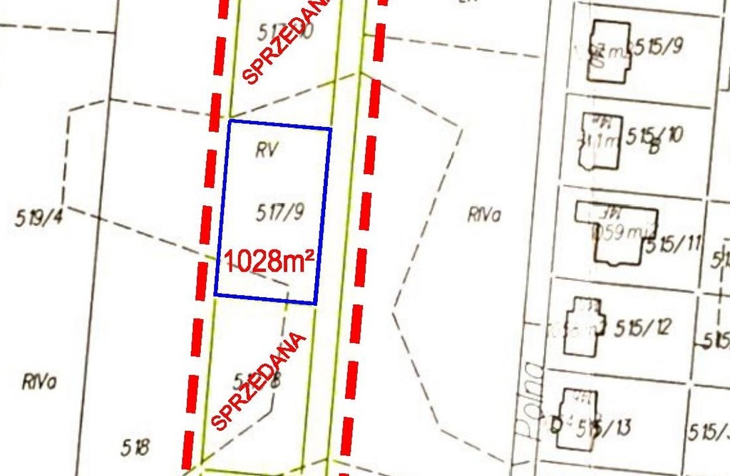 Polecamy działkę budowlaną nr 517/9 przeznaczoną pod