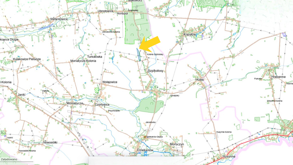 Działka nr 52 obręb Szpikołosy Kształt: nieregularny