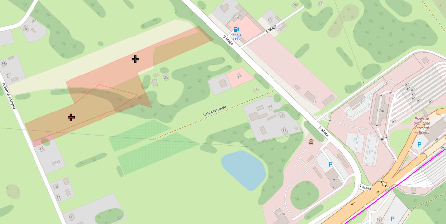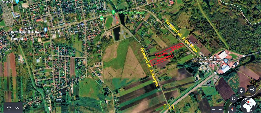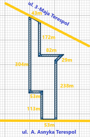 ul. 3-go Maja szerokość działki 43m- jest to droga znajdująca się 800m od