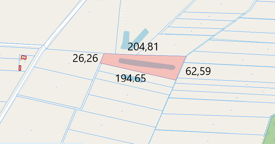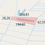 Kształt: nieregularny trapez o wymiarach, szer.: krótki bok - 26,26m, dłuższy 62,59 i dł.: 204,81m i 194,65m
