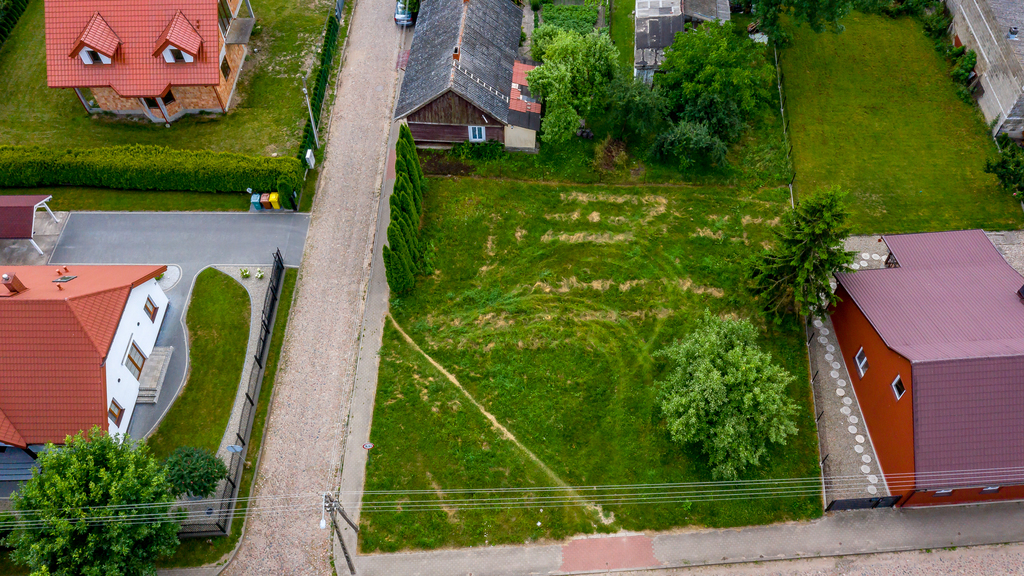 Specyfikacja działkiNieruchomość o wymiarach 27 m szerokości i 26 m długości ma kształt zbliżony do kwadratu, co ułatwia planowanie i zagospodarowanie terenu. Działka jest płaska, co dodatkowo podnosi jej walory użytkowe. W pasie drogowym dostępne są wszystkie niezbędne