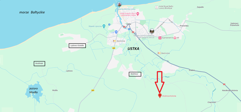 Wodnica w gminie Ustka, blisko morza oraz miasta Ustka. Działka położona w otoczeniu pól i lasu, miejsce idealne dla osób szukających ciszy i spokoju. W ofercie sprzedaży dostępne także działki sąsiednie.