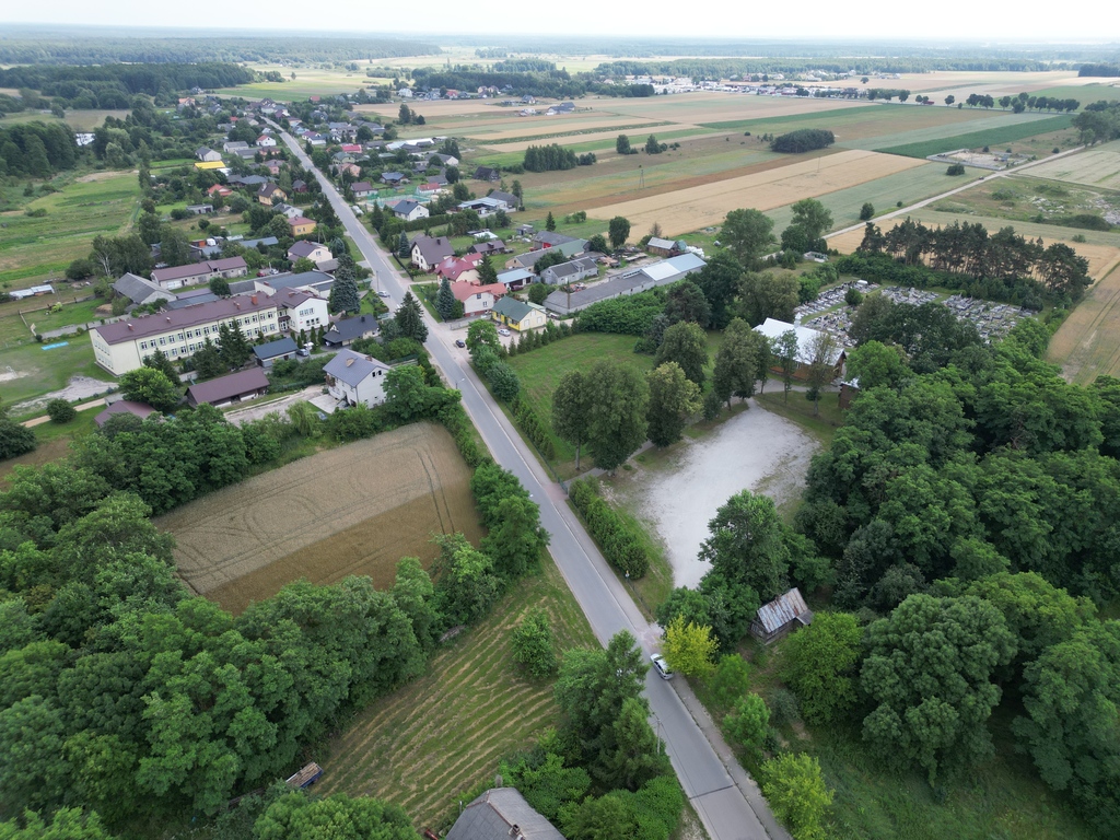 W pobliżu sklep spożywczy, kościół, szkoła, akwen wodny.