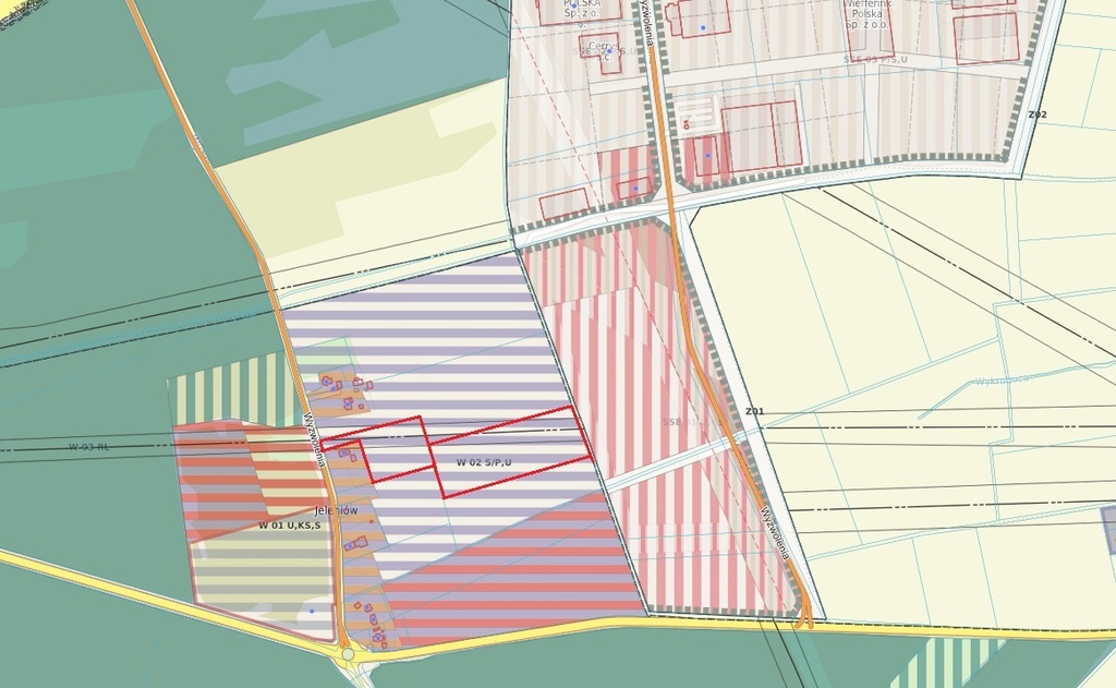 - §5 Ustalenia szczegółowe W 02 S/P,U - Teren projektowanych składów, hurtowni i nieuciążliwej produkcji.