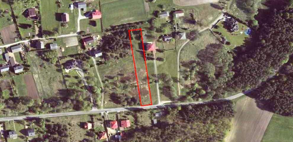 Działka o powierzchni 2326 m2. Dojazd bezpośrednio z drogi asfaltowej.