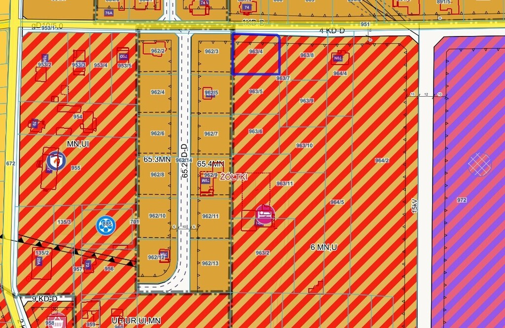 planem zagospodarowania przestrzennego (MPZP), działki przeznaczone są pod zabudowę mieszkaniową jednorodzinną i zabudowę usługową wraz z obiektami i urządzeniami towarzyszącymi oraz zielenią urządzoną.