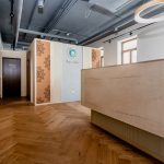- Główna Sala / Recepcja: Przestronne i reprezentacyjne wejście, idealne na recepcję, poczekalnię lub otwartą przestrzeń do ćwiczeń/spotkań. Charakteryzuje się eleganckim parkietem w jodełkę oraz nowoczesnym wykończeniem z motywami orientalnymi.