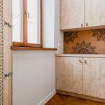 - Podłogi: Elegancki, drewniany parkiet ułożony w jodełkę, nadający wnętrzom ciepła i prestiżu.