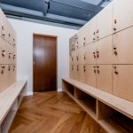 - Przebieralnie: Funkcjonalne i estetyczne szafki na ubrania oraz wygodne ławki, idealnie dopasowane do potrzeb centrum fitness/wellness.
