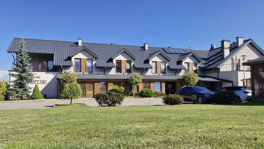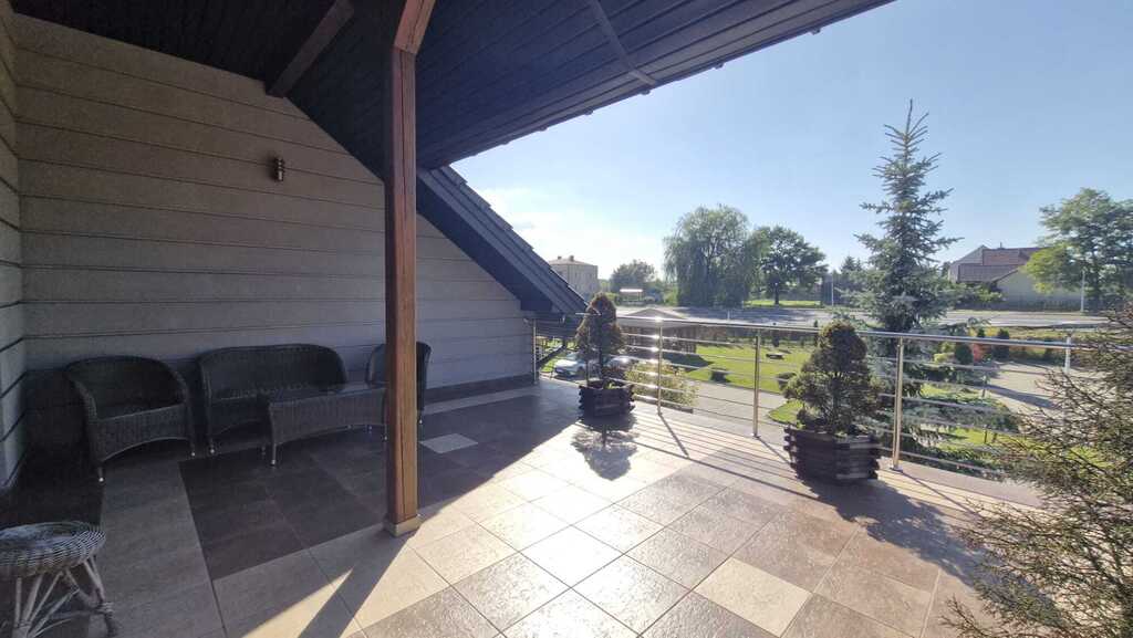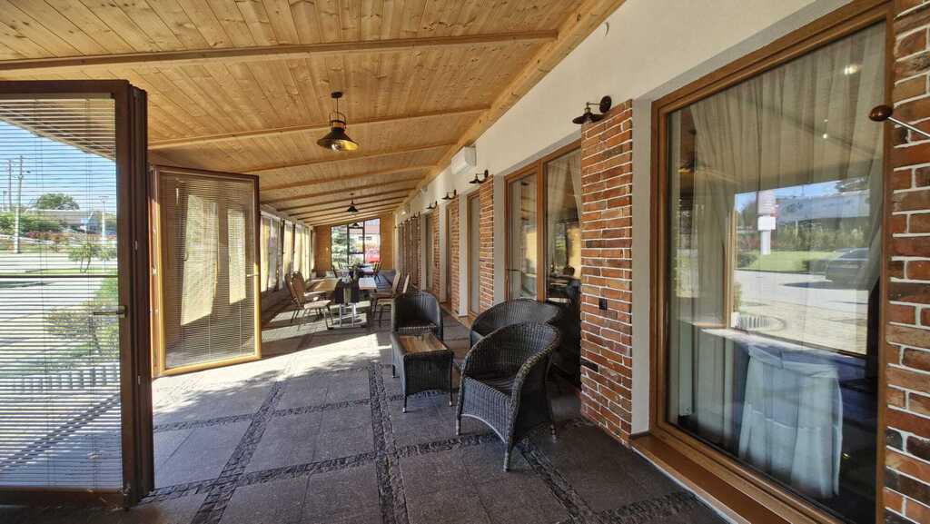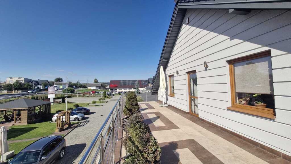 Dwa tarasy zewnętrzne Wyposażenie i udogodnienia: Klimatyzacja w sali bankietowej, konferencyjnej i biurze Podnośnik/winda dla osób niepełnosprawnych Profesjonalne zaplecze gastronomiczne Obiekt monitorowany i utrzymany w bardzo dobrym stanie technicznym Atuty inwestycyjne: Gotowy, działający obiekt z rozpoznawalną marką Doskonała lokalizacja przy ruchliwej trasie krajowej Funkcjonalny układ – idealny pod działalność hotelarsko-gastronomiczną Możliwość dalszego rozwoju działalności (np. SPA, organizacja eventów całorocznych).