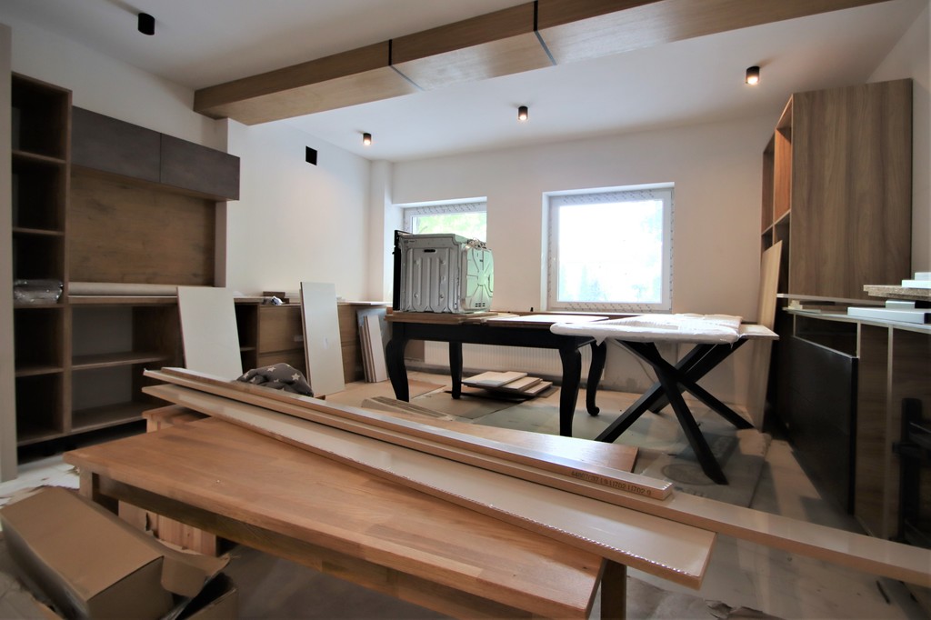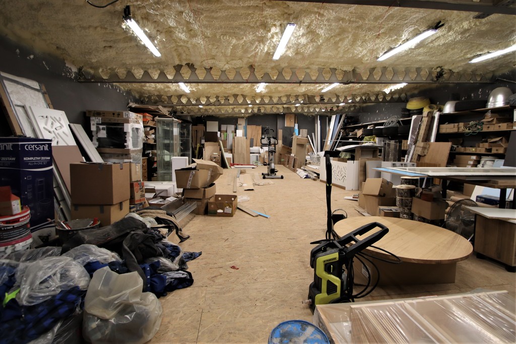 - w budynku okna PCV, ściany wygładzone, podłogi z paneli lub płytek, w pomieszczeniu piwnicznym posadzka betonowa