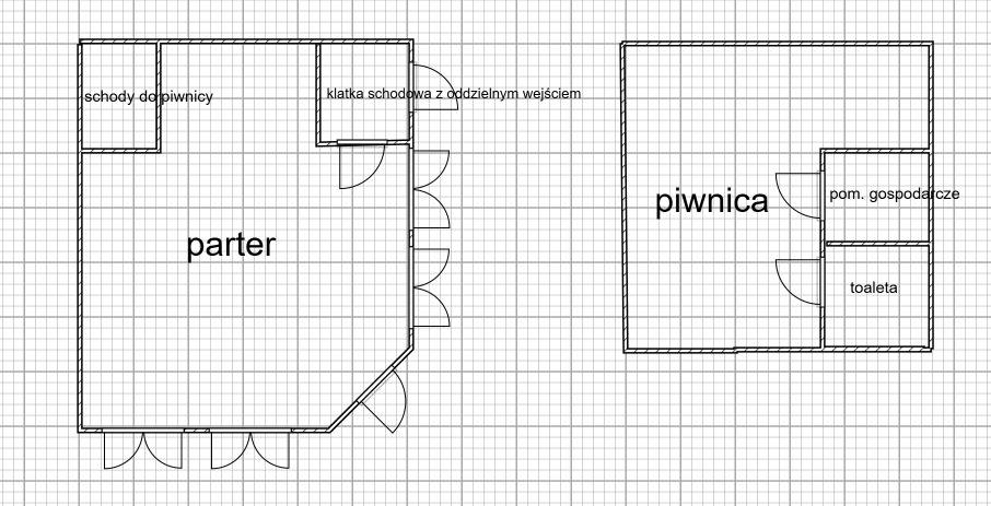 - powierzchnia dodatkowa w piwnicy (30m2) z niewielkim pomieszczeniem gospodarczym i łazienką