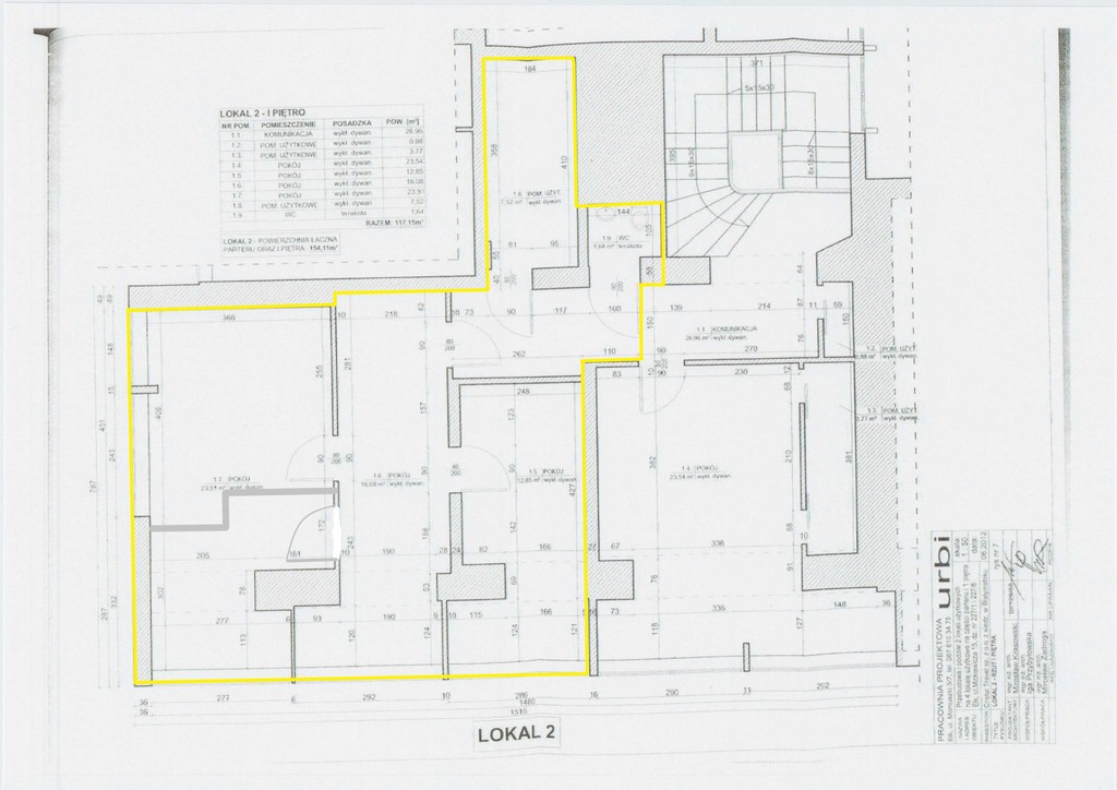 Lokal składa się z 4 pokoi biurowych, zaplecza socjalnego, przestronnego korytarza (do zaadoptowania jako poczekalnia/portiernia) oraz WC.