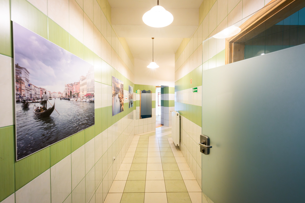 - zaplecze basenowe: szatnie, natryski, toalety, przebieralnie