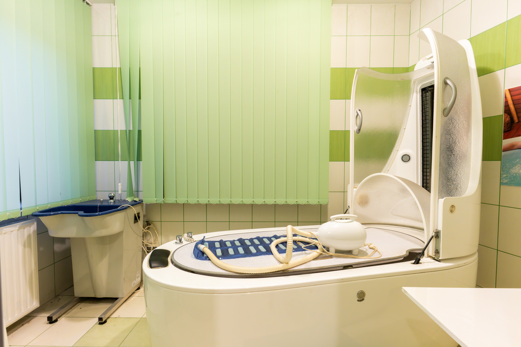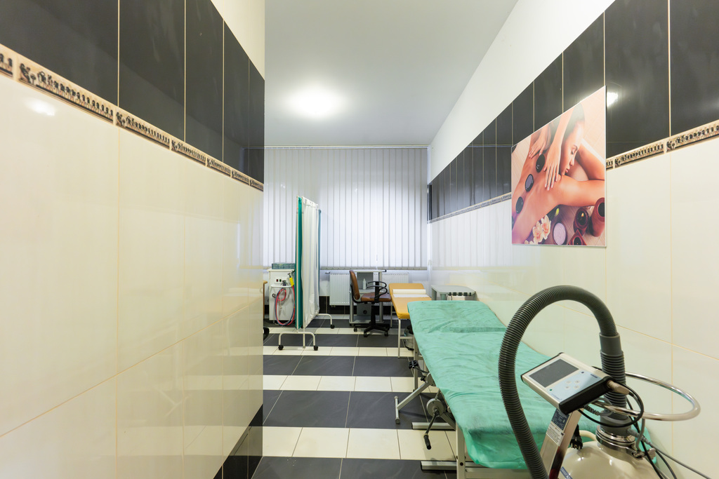 - strefa zabiegowa – 3 gabinety wyposażone w urządzenia do hydroterapii, inhalacji, wirówki, UGUL, aquavibron, laser, lampy sollux