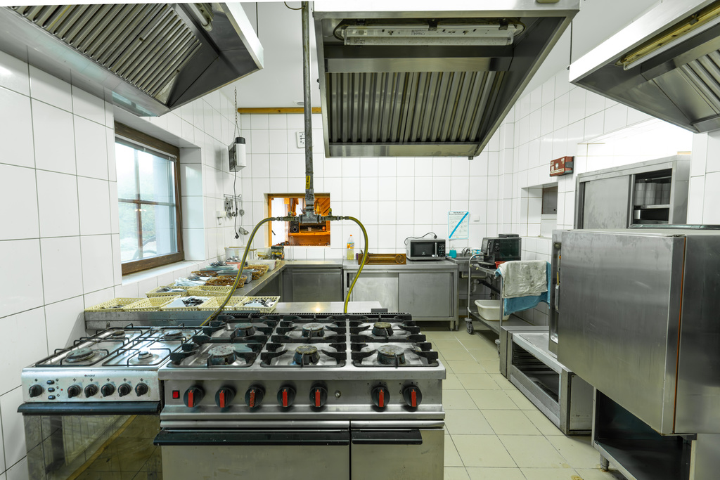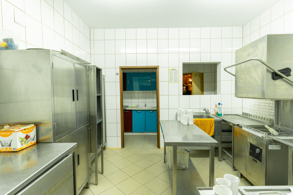 - w pełni wyposażona kuchnia profesjonalna (trzony gazowe, konwekcyjno-parowe piece, chłodnie, zmywalnie, magazyny żywności, zaplecze sanitarne)