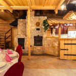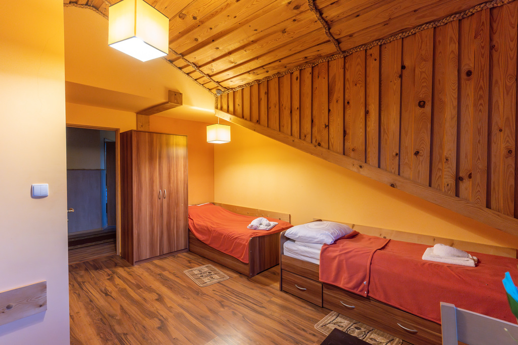 - 8 pokoi noclegowych z łazienkami na dole i dodatkowe 8 na górze.