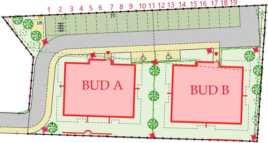 W ramach inwestycji zaprojektowano miejsca postojowe na terenie posesji w przedziale cenowym 30 000 -50 000 zł netto plus VAT 23% – dostępność należy potwierdzić indywidualnie.
