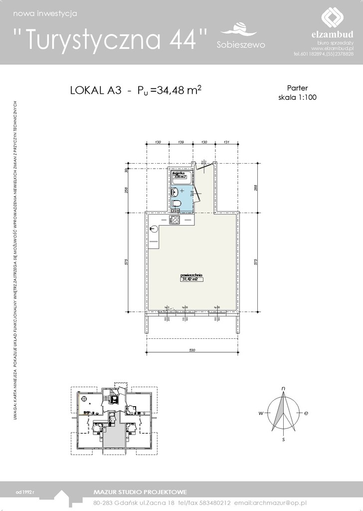 Na sprzedaż lokal A3 o powierzchni 33,89 m², położony na parterze nowoczesnego budynku przy ul. Turystycznej 44 w Gdańsku, na Wyspie Sobieszewskiej.