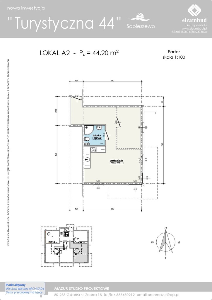 Na sprzedaż lokal A2 o powierzchni 43,07 m², położony na parterze nowoczesnego budynku przy ul. Turystycznej 44 w Gdańsku, na Wyspie Sobieszewskiej.