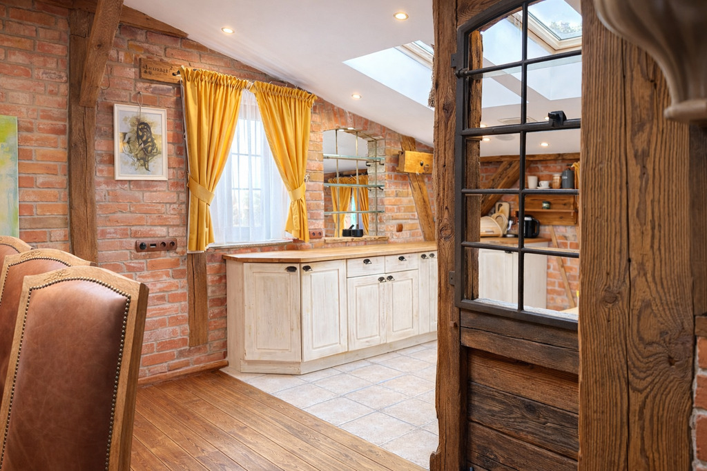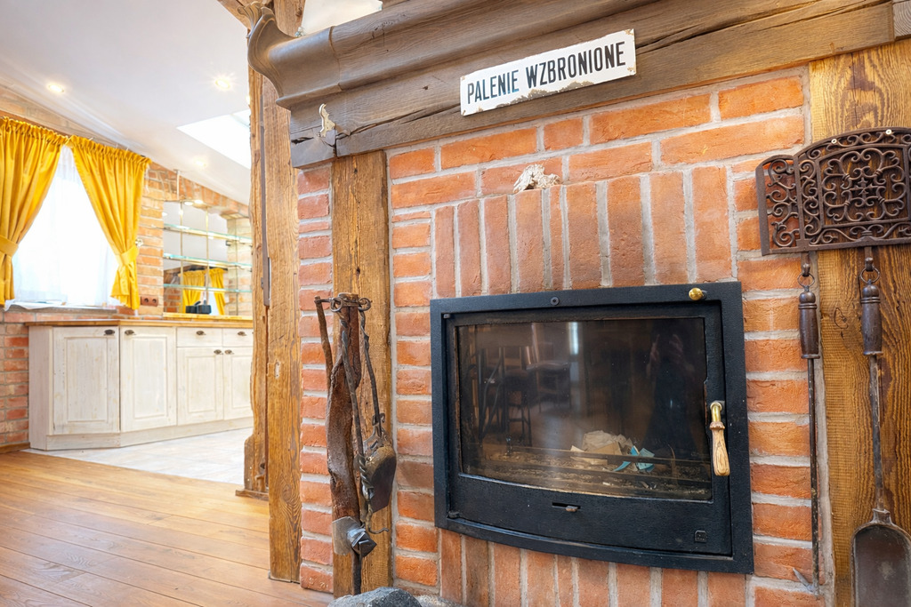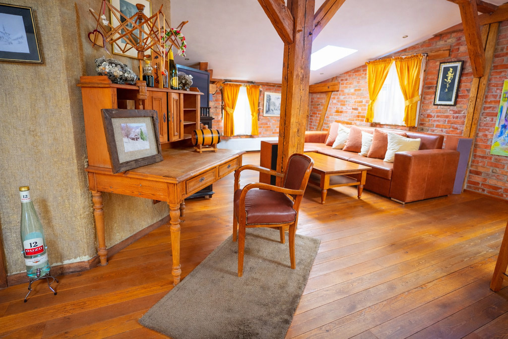 •  Duże 100metrowe  studio/apartament  z kominkiem,  łazienką i aneksem kuchennym
