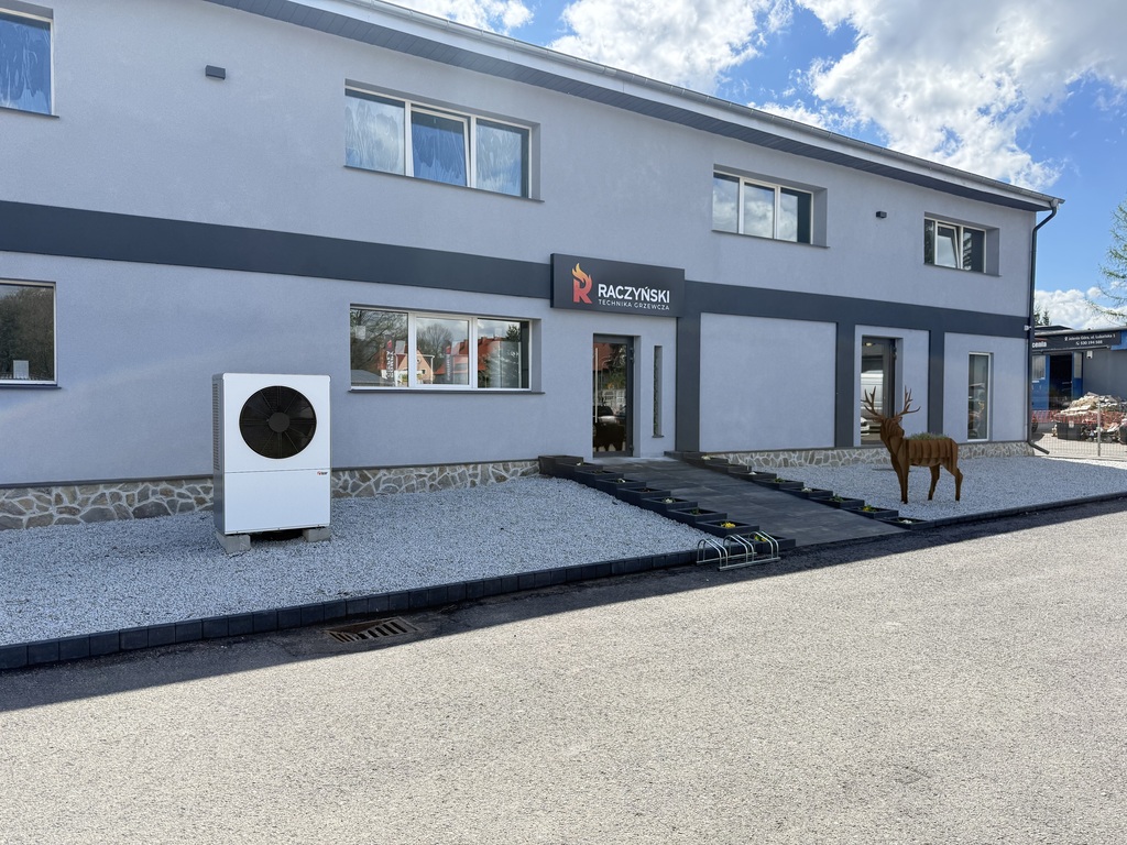 Budynek bezpośrednio po remoncie, na parterze salon pokazowy kotłów grzewczych.