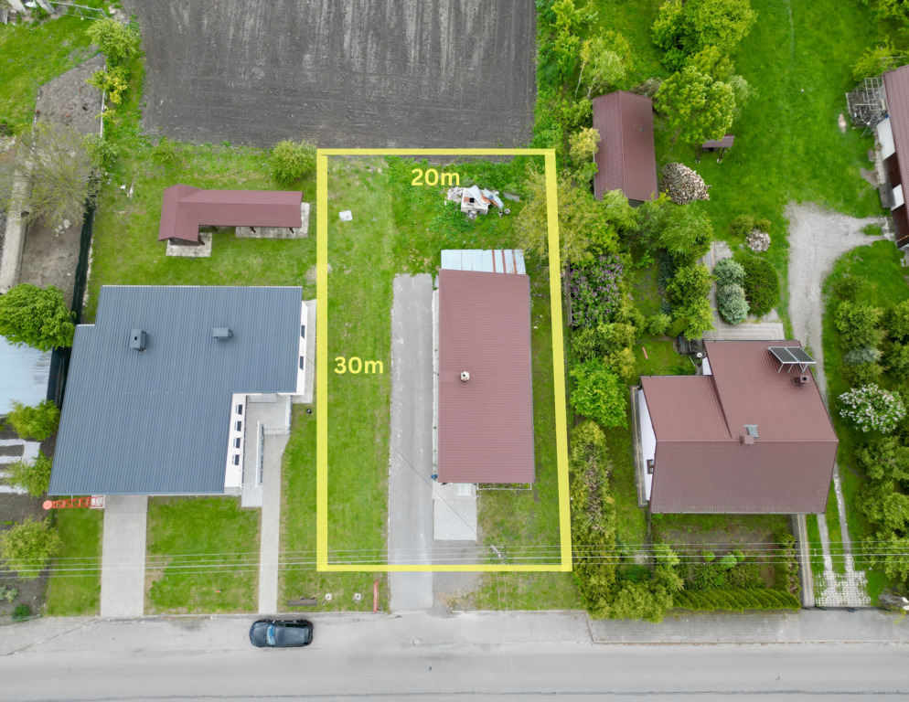 Działka: 600 m² (użytkowanie wieczyste) – teren ogrodzony, z miejscem na parking