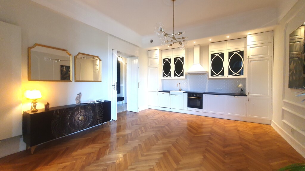 Apartament 103 m2 znajduje się mieści się w kamienicy z 1913 roku, przy ulicy Lubomirskiego.