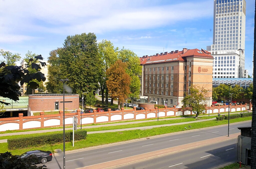 Apartament znajduje się na drugim piętrze i z jego okien roztacza się piękny widok na budynki Uniwersytetu Ekonomicznego i Unity Centre.
