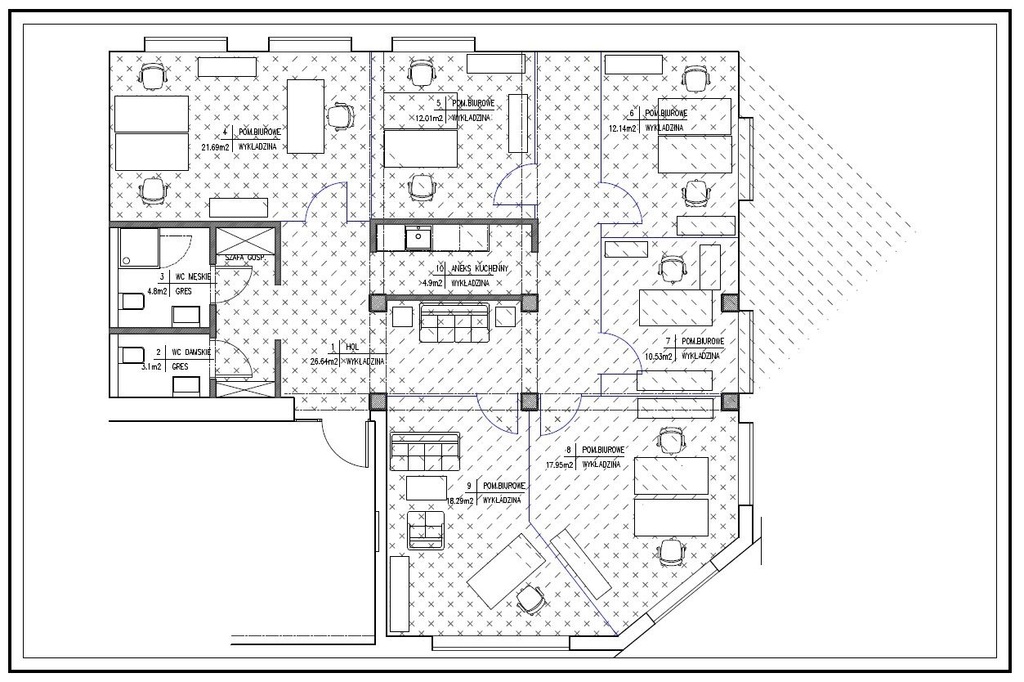 - Lokal po remoncie – do własnej aranżacji, lub wykończony (Najem wykończonego biura ok- 9500 pln netto/ miesiąc)