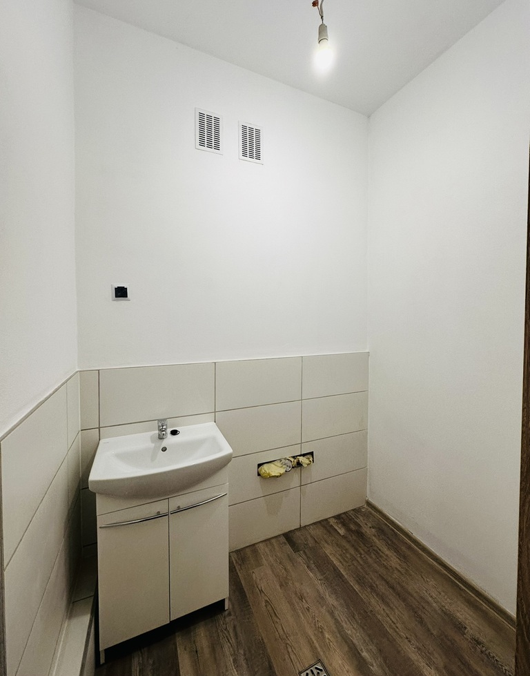 -na podłogach panele przemysłowe oraz płytki w pomieszczeniach socjalnych
