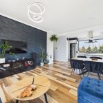 - salonu z aneksem kuchennym i wyjściem na taras i ogródek