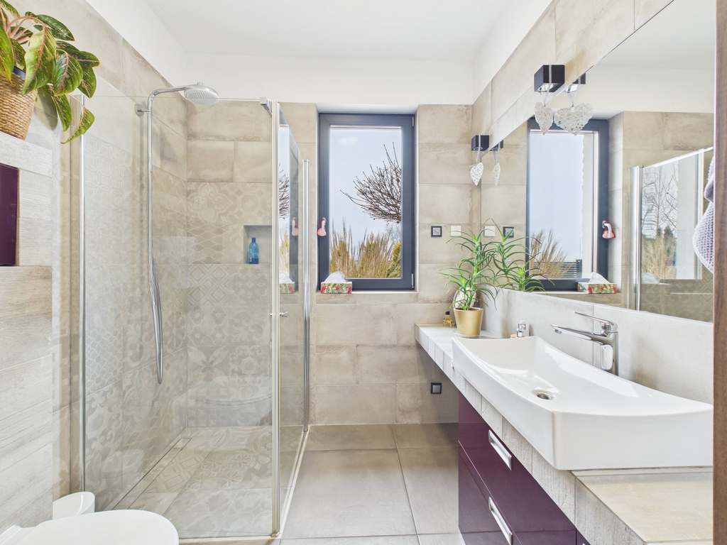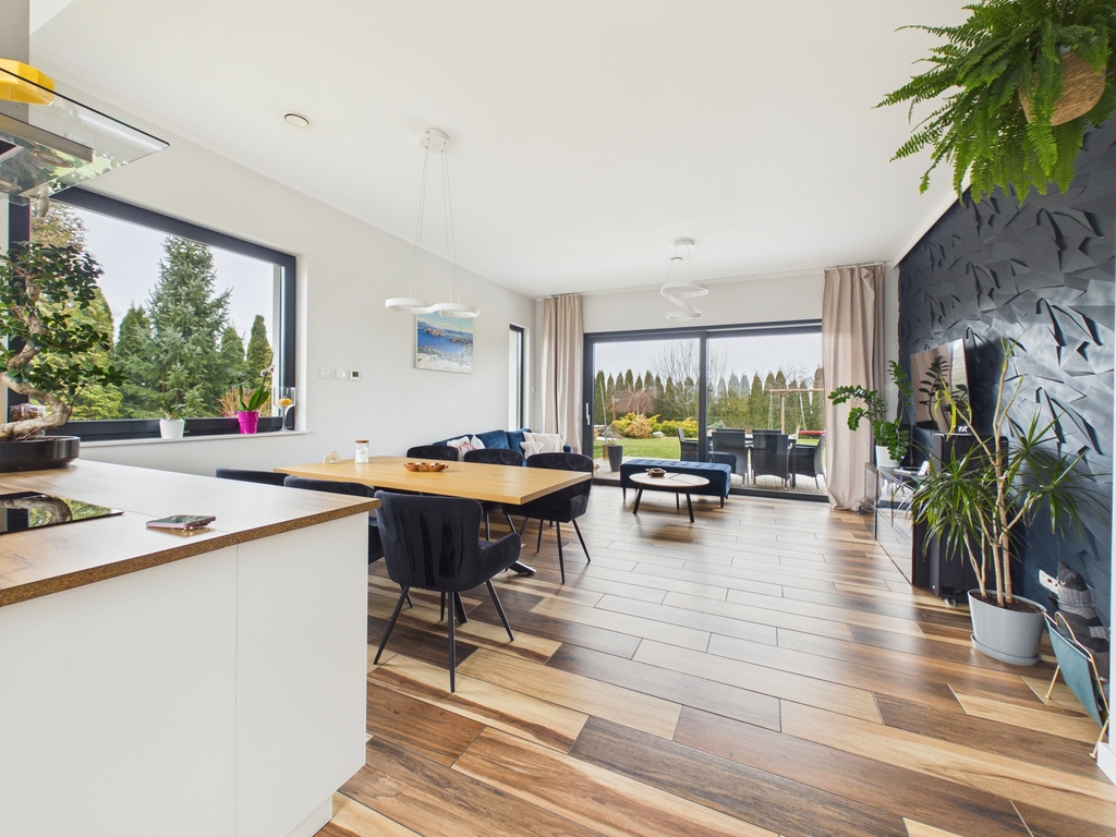 Dom jest wyposażony we wszelkie nowoczesne udogodnienia - panele PV, pompa ciepła, ogrzewanie podłogowe z pełną automatyką sterowaną z każdego pomieszczenia niezależnie, rekuperacja + gruntowy wymiennik ciepła. Wybudowany z betonu komórkowego termalica.
