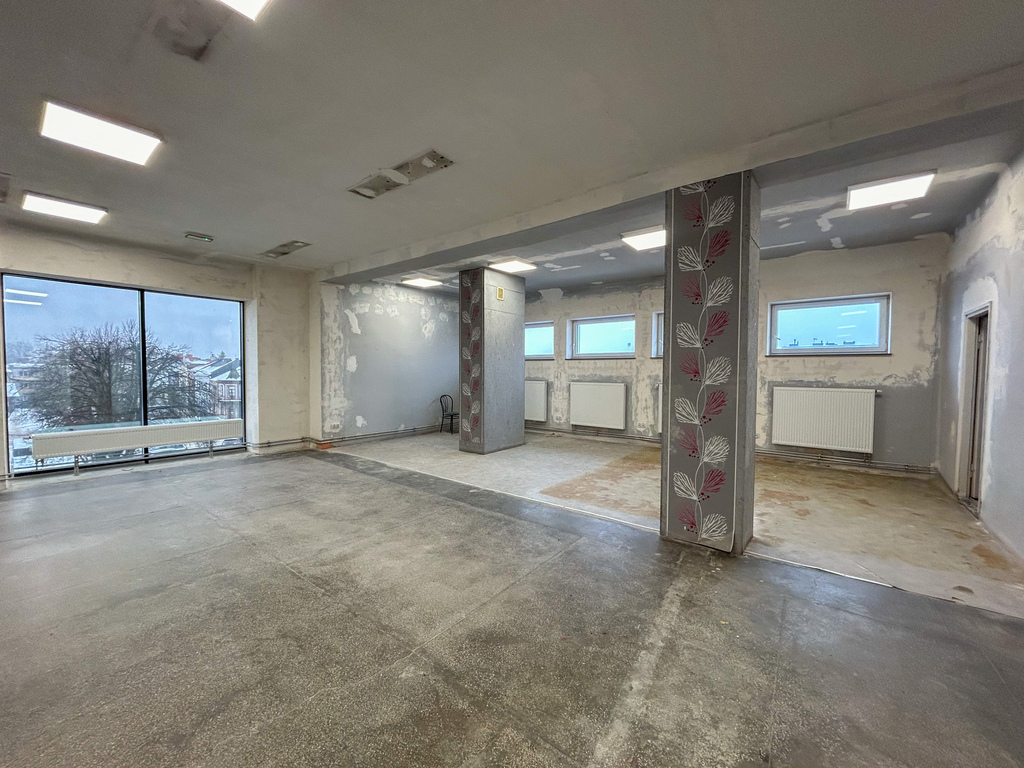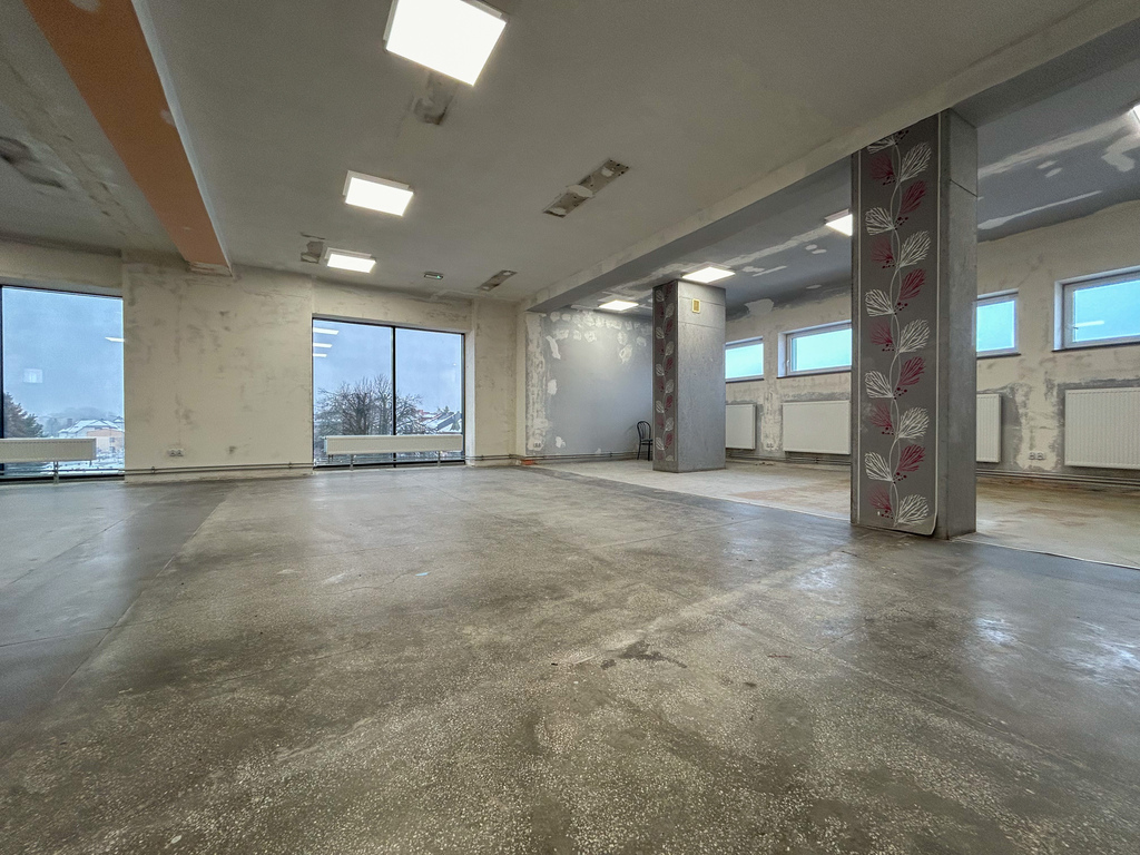 235 m2. Jest to przestrzeń doskonale doświetlona dzięki dużym przeszkleniom, co optycznie powiększa wnętrze i zapewnia komfortowe warunki pracy. Lokal przeszedł niedawno remont ścian oraz podłóg i jest gotowy do użytkowania. Cena najmu wynosi 7900 zł brutto miesięcznie.