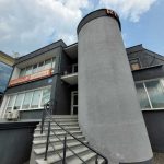 Przy jednej z głównych ulic Wiertniczej położony jest budynek usługowo - biurowy, trzykondygnacyjny.