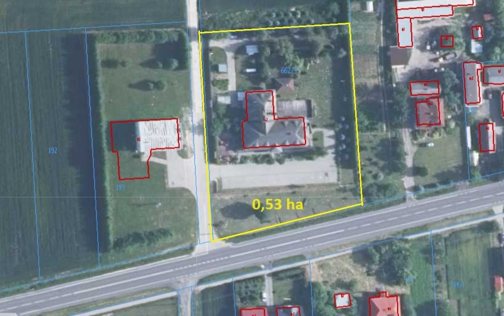 Bezpośredni dojazd i dojście utwardzoną kostką z drogi gminnej nr 615. Nieruchomość położona bezpośrednio przy drodze krajowej nr 74.