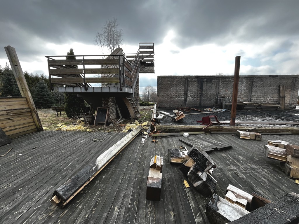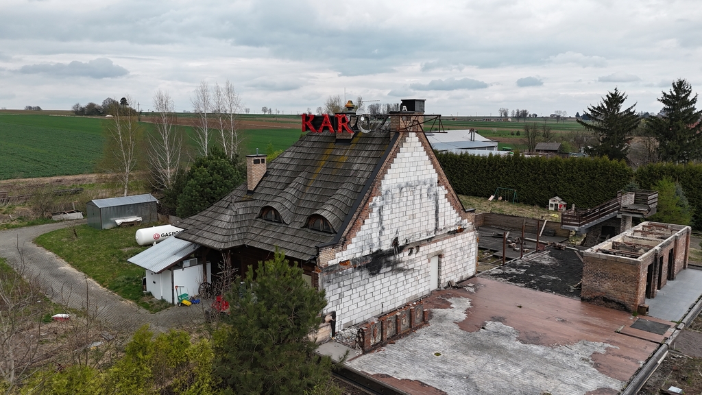 Główna część o konstrukcji drewnianej doznała uszkodzeń w wyniku pożaru. Pomimo tego, murowana struktura budynku pozostaje w dobrym stanie, wymagając jedynie niewielkich prac remontowych. Nieruchomość wymaga gruntownej odbudowy zgodnie ze starym przeznaczeniem lub adaptacji do nowych funkcji. Pozostały budynek, elementy konstrukcyjne i fundamenty mogą być punktem wyjścia do stworzenia własnego biznesu w rozpoznawalnym miejscu na mapie gminy. Duża działka umożliwia realizację kolejnych pomysłów, bez obaw o brak przestrzeni.