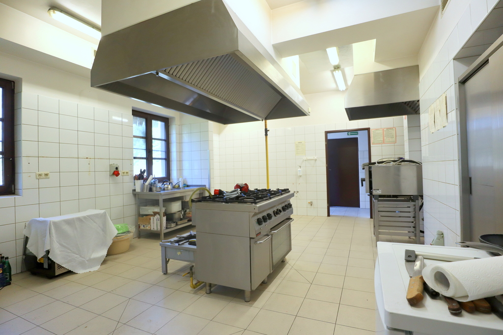 Parter  - 109m2 - kuchnia i zaplecze kuchenne: pomieszczenia magazynowe, przygotowalnie, zmywalnia; pomieszczenia techniczne i sanitarne.