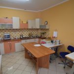 Część mieszkalna obejmuje kuchnię, łazienkę, korytarz, wejście oraz pokój, co może być wygodne dla pracowników lub właściciela firmy.