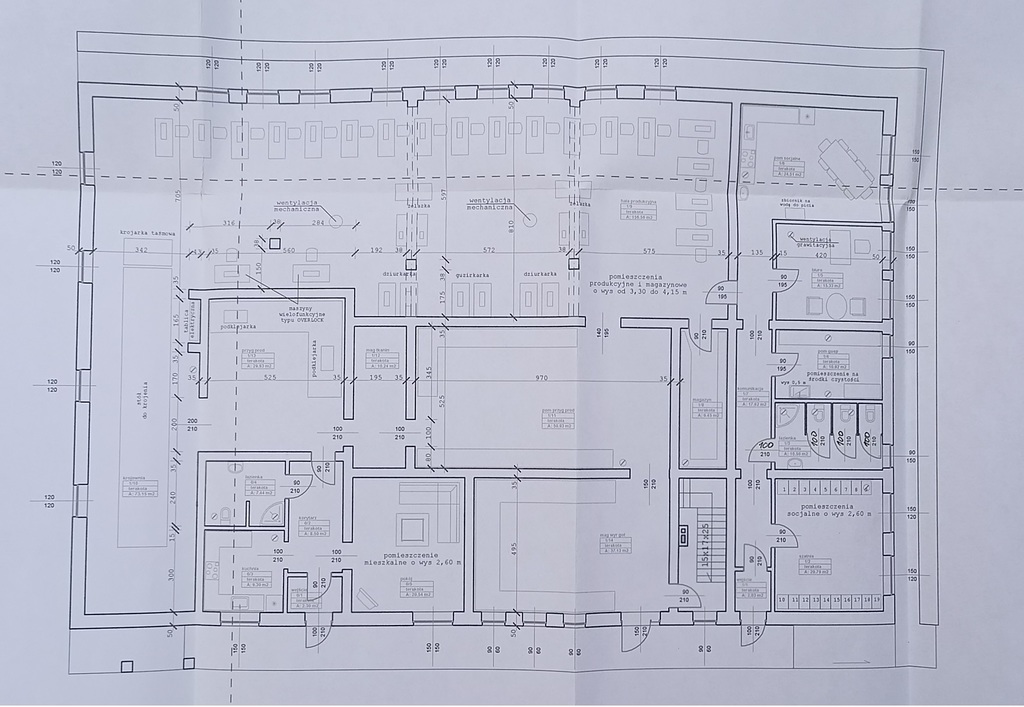 Budynek cechuje się dużą powierzchnią użytkową - 745 m² - co czyni go idealnym dla różnorodnych działalności przemysłowych i usługowych. W razie potrzeby, istnieje możliwość zakupu nieruchomości wraz z wyposażeniem szwalni oraz know-how, co może stanowić dodatkowy atut dla potencjalnych nabywców.